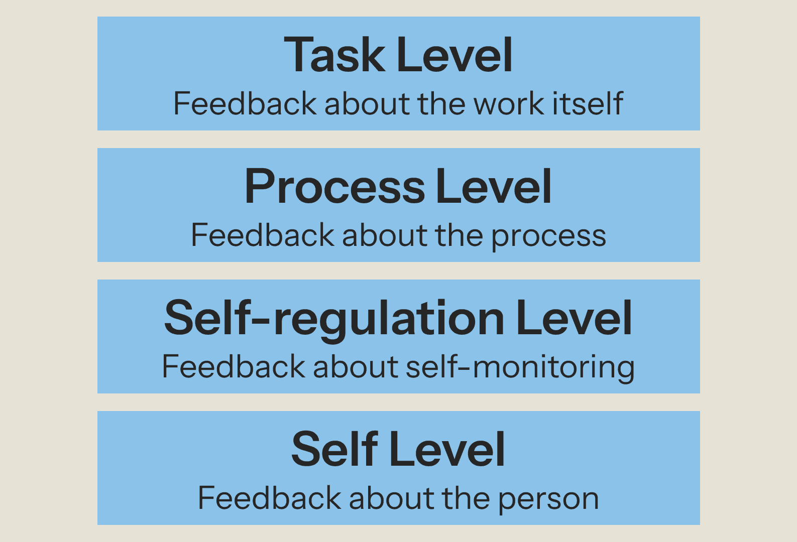 Not all feedback helps students in the same way. John Hattie and Helen Timperley proposed four levels of feedback, each with different effects on learning.